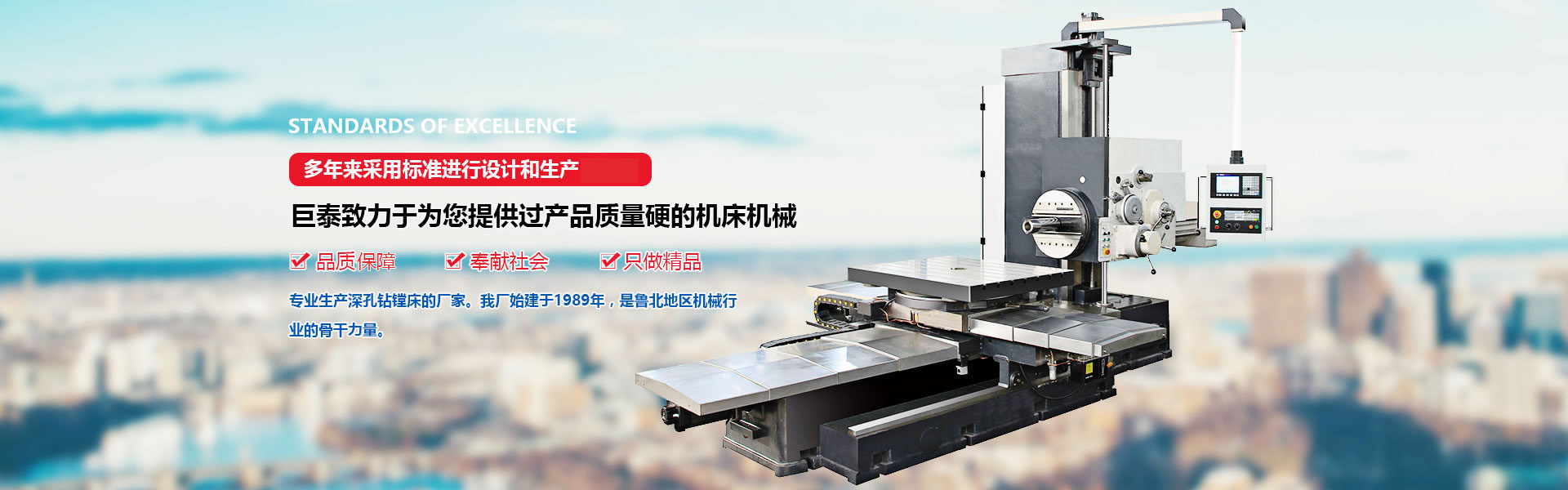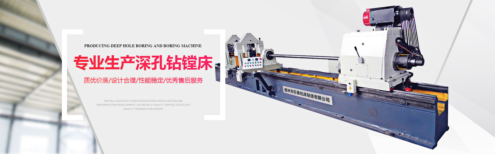 德州市巨泰機床制造有限公司位于具有“九達天衢”、“神京之門”之稱的山東省德州市,是專業(yè)生產深孔鉆鏜床的廠家。我廠始建于1989年,擁有固定資產1800萬元,員工120人,其中高級工程師8人,專業(yè)技術人員26人,是魯北地區(qū)機械行業(yè)的骨干力量。